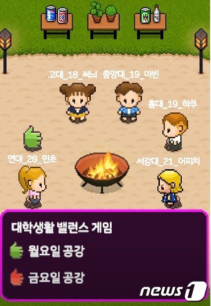 코기팅(코로나 시국 새내기들의 랜선 미팅) 포르젝트 미리보기 영상 캡쳐. 각 대학 학생들이 아바타를 통해 게임을 하고 있다. © 뉴스1